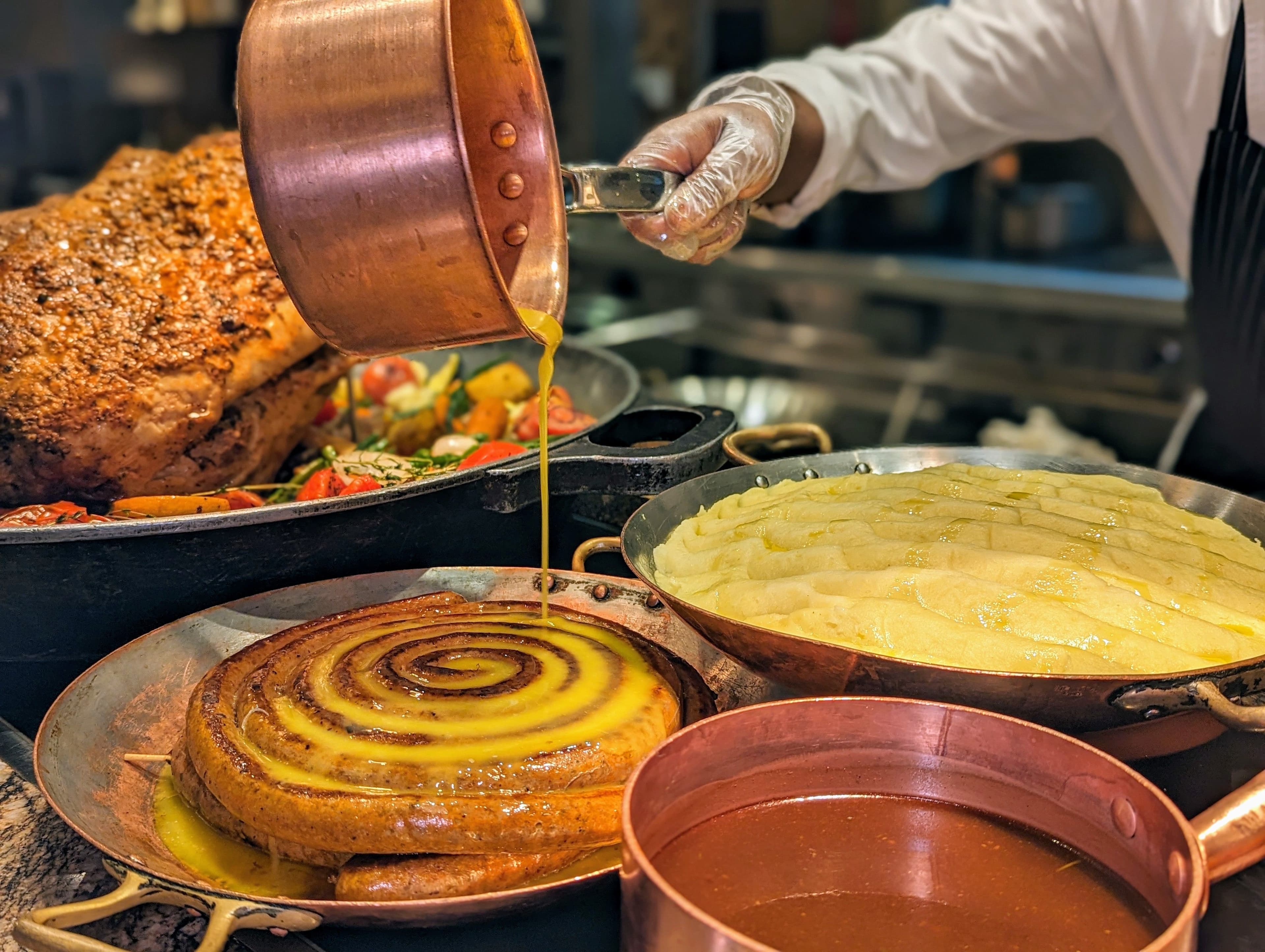 Home comforts and nostalgia take hold at the roasts: epic portions, tender cuts of meat, the most aesthetic beef Wellington with taste to match (it feels like a crime to ask for the first slice, but do it!) and Yorkies that put many a Sunday roast to shame in both size and crispiness. Don’t sleep on the chargrilled Indian selection, your favourite meat cuts grilled-to-order, a top-notch Italian pizzeria in the corner churning out crispy pizza and focaccia and a very respectable Asian selection - we rate the siu mai, gyoza and DIY bao buns in particular!